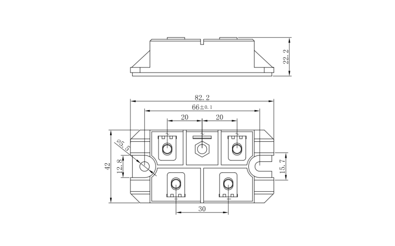 四单元快恢复二极管模块 600V/4*100A/82X42mm(孔距66mm)(键合工艺)